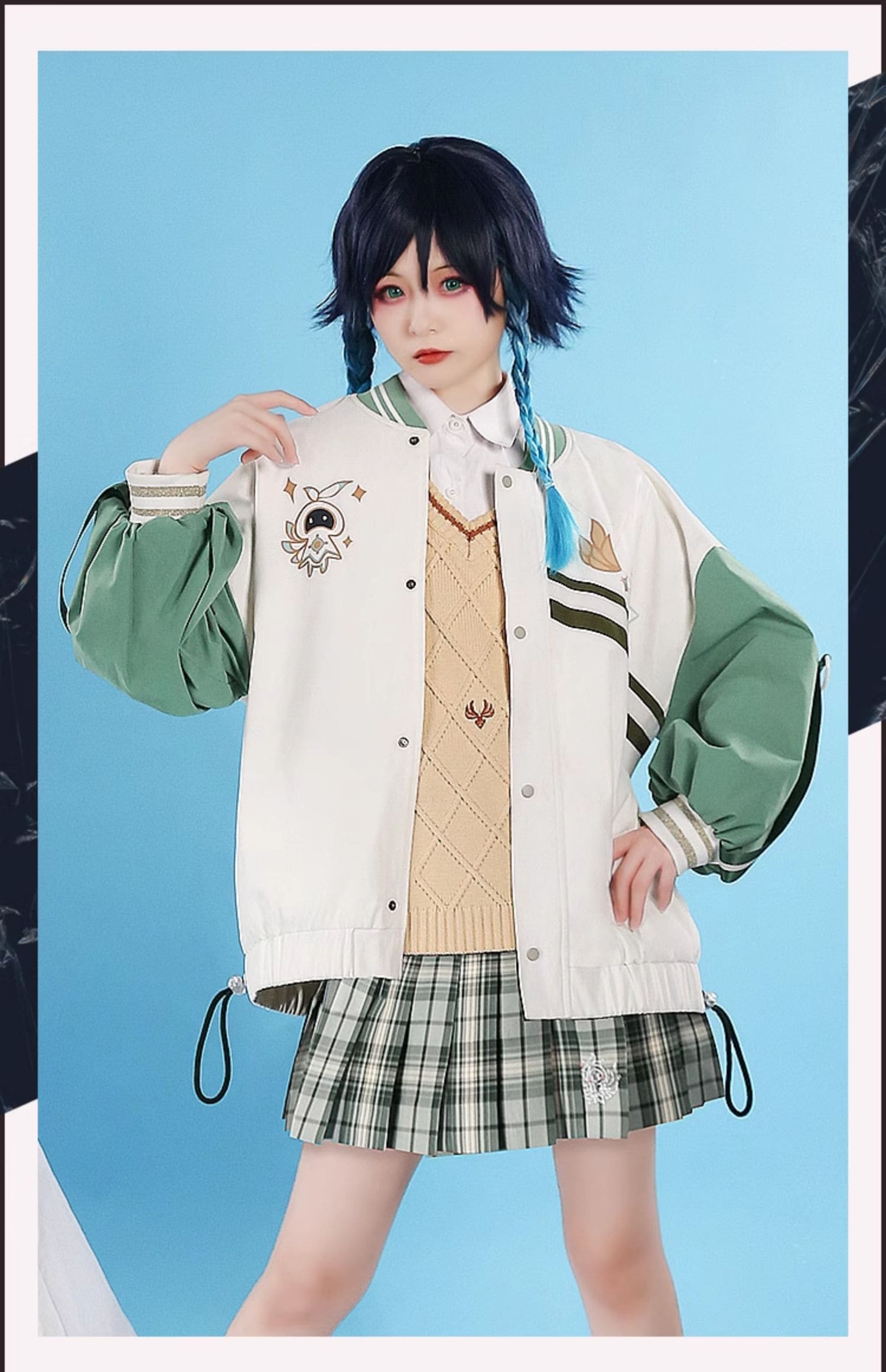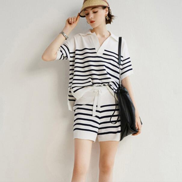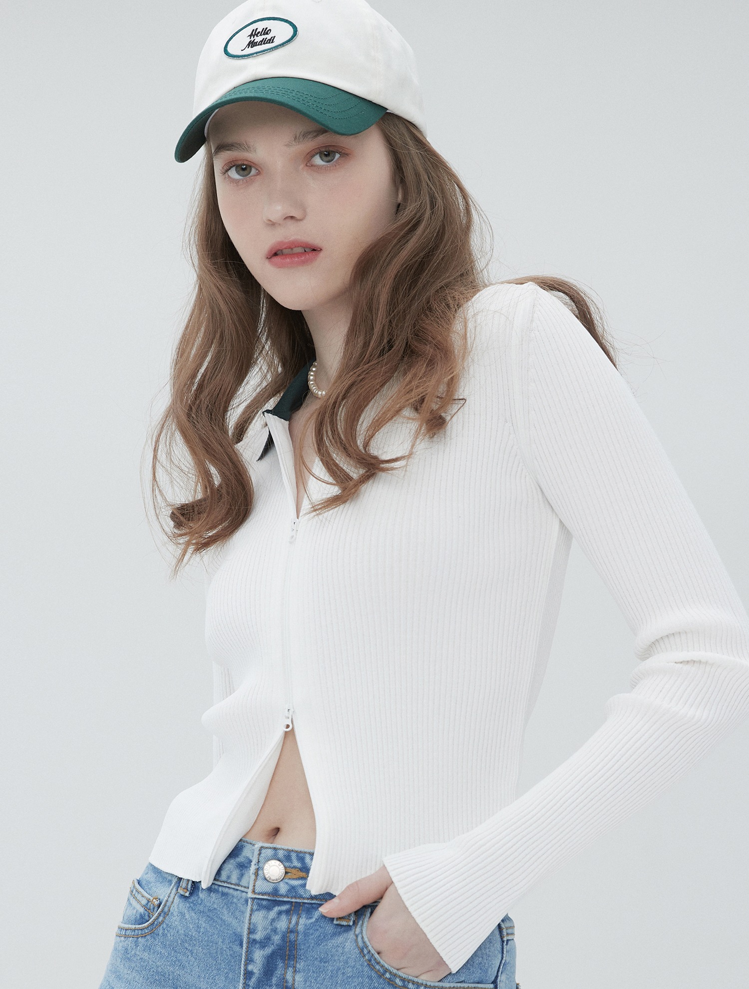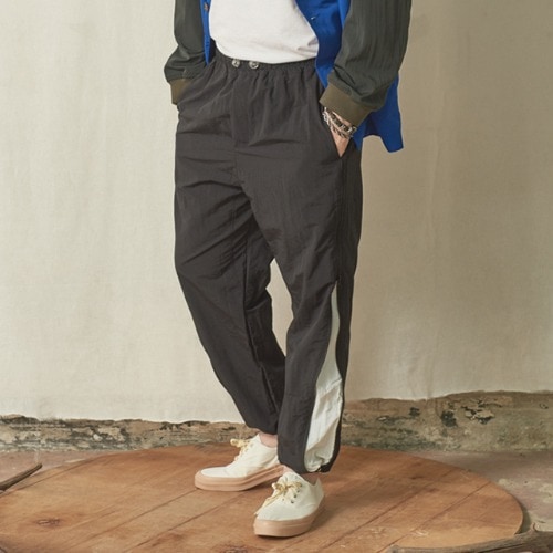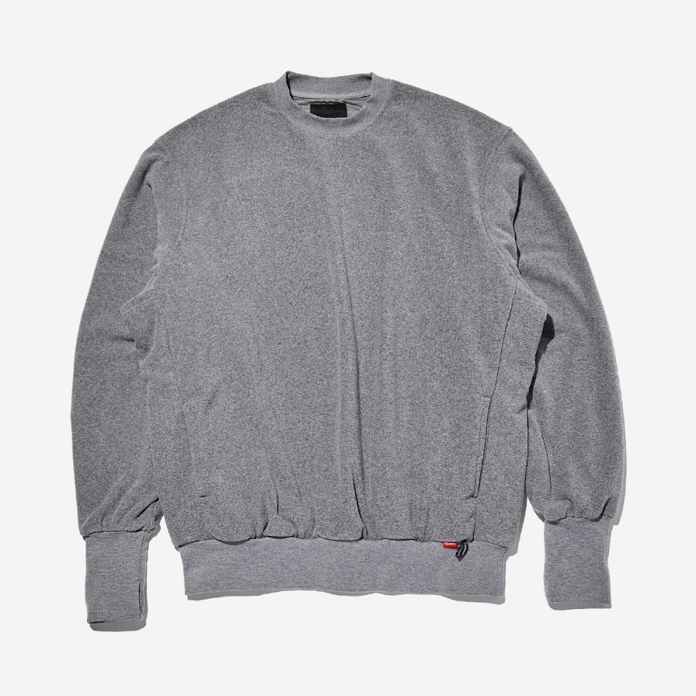 ■デザイン身頃のランダムワッフル生地と衿裏のボーダー柄がスポーティーなアクセントになっています。
